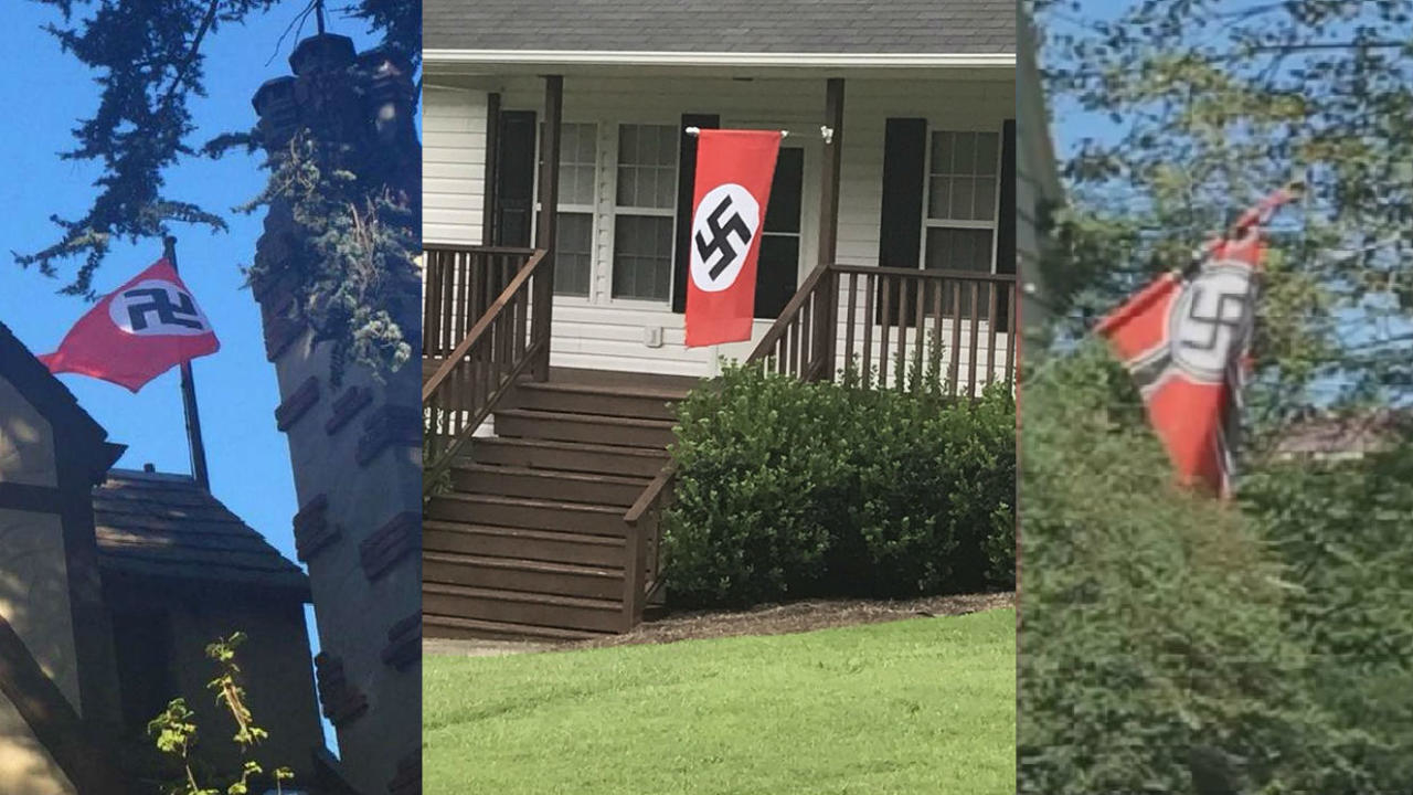 Plusieurs cas de drapeaux nazis accrochés à des maisons de particuliers ont été recensés aux États-Unis, dans la foulée des violences de Charlottesville le week-end dernier.