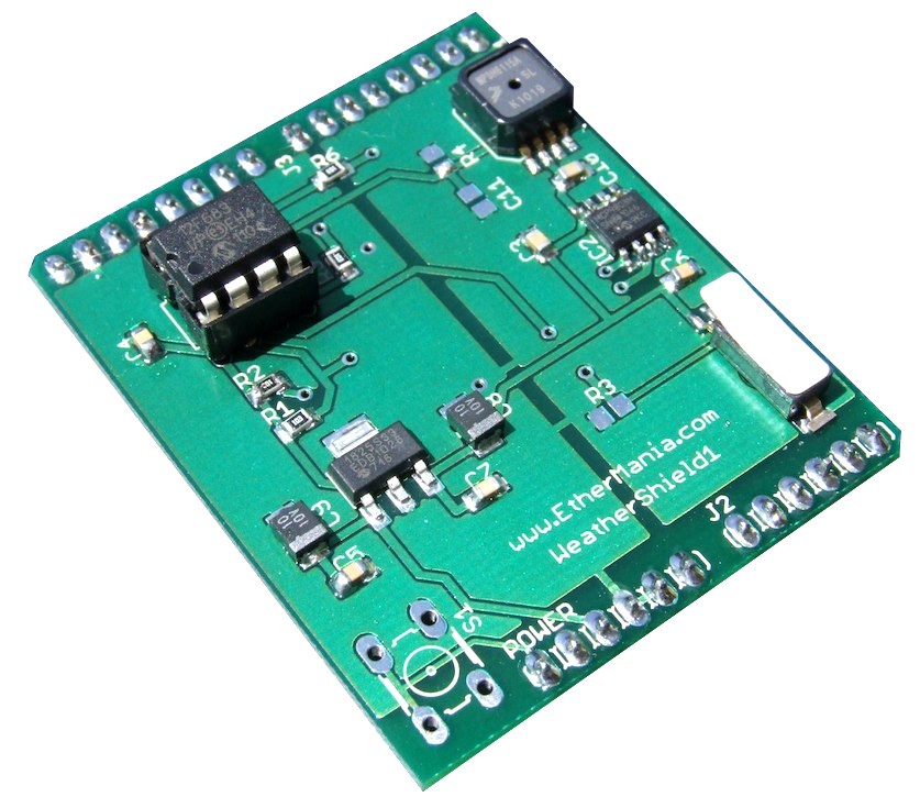 At EtherMania we developed a shield that allow reading Pressure, Temperature and Humidity. The shield is equipped with three sensors and a PIC12F683 microcontroller programmed with a specific firmware that interfaces wi…